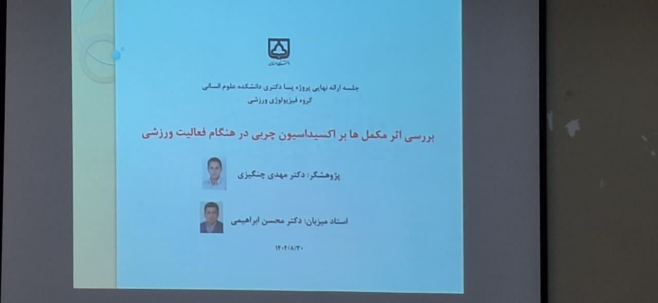 ارائه پایانی مقطع پسا دکترای آقای دکتر مهدی چنگیزی با عنوان بررسی اثر مکمّل ها بر اکسیداسیون چربی در هنگام فعالیت ورزشی